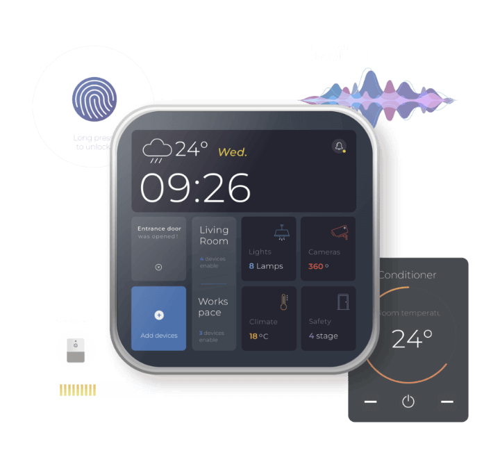 - スマートホームのコントロールパネル、音声制御パネル、ホームゲートウェイ